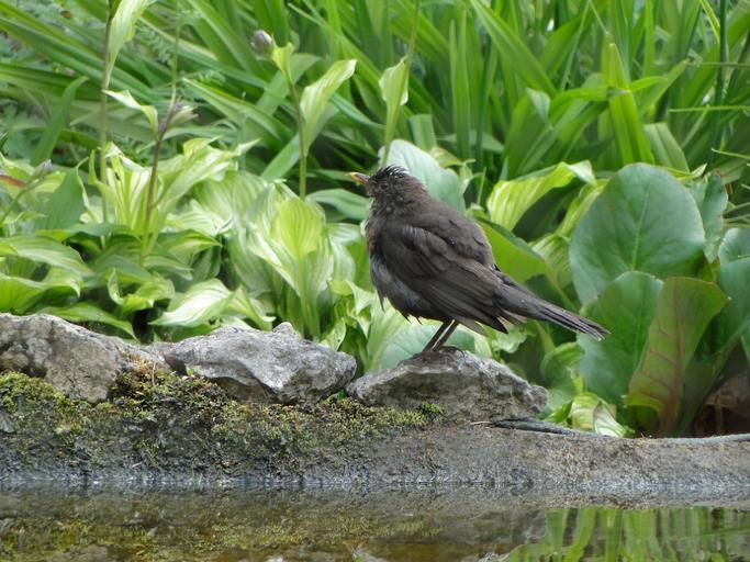 Keywords: blackbird bird birds black blackbirds animal bank animal world nature pond water garden