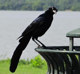 Keywords: blackbird raven crow black bird spooky feather lake funny head nature dark perch scary head cocked trash can white rock lake dallas texas