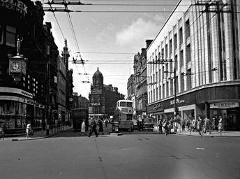 | Keywords: newcastle upon tyne newcastleupontyne 1960s blackett street blackettstreet buses blackandwhite monochrome road outdoor architecture building building structure infrastructure black and white View of Blackett Street, Newcastle upon Tyne, May 1961 (TWAM ref. DT.TUR/2/26647N). Tyne & Wear Archives presents a series of images taken by the Newcastle-based photographers Turners Ltd. The firm had an excellent reputation and was regularly commissioned by local businesses to take photographs of their products and their premises. Turners also sometimes took aerial and street views on their own account and many of those images have survived, giving us a fascinating glimpse of life in the North East of England in the second half of the Twentieth Century. (Copyright) We're happy for you to share these digital images within the spirit of The Commons. Please cite 'Tyne & Wear Archives & Museums' when reusing. Certain restrictions on high quality reproductions and commercial use of the original physical version apply though; if you're unsure please email archives@twmuseums.org.uk View of Blackett Street, Newcastle upon Tyne, May 1961 (TWAM ref. DT.TUR/2/26647N). Tyne & Wear Archives presents a series of images taken by the Newcastle-based photographers Turners Ltd. The firm had an excellent reputation and was regularly commissioned by local businesses to take photographs of their products and their premises. Turners also sometimes took aerial and street views on their own account and many of those images have survived, giving us a fascinating glimpse of life in the North East of England in the second half of the Twentieth Century. (Copyright) We're happy for you to share these digital images within the spirit of The Commons. Please cite 'Tyne & Wear Archives & Museums' when reusing. Certain restrictions on high quality reproductions and commercial use of the original physical version apply though; if you're unsure please email archives@twmuseums.org.uk |