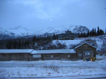 Keywords: Blackrapidsroadhouse2.JPG A photo of the w en Black rapids roadhouse Own 2007-11-06 Icewedge public domain Mountains of Alaska Roadhouses in Alaska Log buildings in Alaska