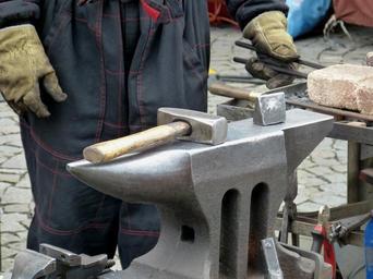 Keywords: blacksmith iron metal forge craft hammer anvil hand work glove