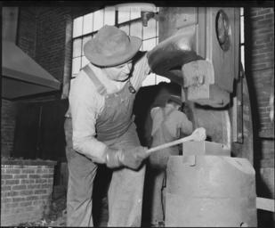 | Keywords: Blacksmith using hammer to shape piece of heated iron. The Pocahontas Corporation, Mines 33-34, Bishop, Tazewell... - NARA - 541075.tif Scope and content General notes 541075 Local identifier 245-MS-2048L Department of the Interior Solid Fuels Administration For War 04/19/1943 - 06/30/1947 NARA-Author Lee Russell 1903-1986 Photographer 2489414 <br /> Still Picture Records Section Special Media Archives Services Division NWCS-S National Archives at College Park 8601 Adelphi Road College Park MD 20740-6001 1946-08-27 Record group Record Group 245 Records of the Solid Fuels Administration for War 1937 - 1948 Record group ARC 572 Photographs of the Medical Survey of the Bituminous Coal Industry compiled 1946 - 1947 Series ARC 540230 File unit File unit ARC Variant control numbers NAIL Control Number NWDNS-245-MS-2048L yes Other versions <gallery> File Blacksmith_using_hammer_to_shape_piece_of_heated_iron _The_Pocahontas_Corporation _Mines_33-34 _Bishop _Tazewell _-_NARA_-_541075 tif tif File Blacksmith_using_hammer_to_shape_piece_of_heated_iron _The_Pocahontas_Corporation _Mines_33-34 _Bishop _Tazewell _-_NARA_-_541075 jpg jpg </gallery> NARA-cooperation PD-USGov NARA TIF images with categorized JPGs Virginia Coal mining in Appalachia August 1946 in the United States Bib overalls Black and white photographs Black and white photographs of men at work Black and white photographs of the United States in the 1940s Black and white photographs of Virginia Blacksmiths from the United States Virginia Males with gloves Men at work in Virginia Men facing right and looking right Men with hats 1946 in Virginia People of Virginia People of the United States in 1946 Tazewell County Virginia 20th-century men of the United States 27 August |