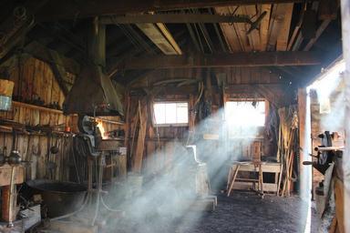Keywords: blacksmith workshop equipment metalwork traditional barn shak shed light