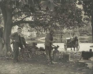 | Keywords: archives state records nsw staterecordsnsw newsouthwales blackandwhite blacksmiths royal national park royalnationalpark workers park horse and cart horseandcart river trees horses cumberland fashion clothing outdoor black and white A blacksmith at work in the Royal National Park (NSW) Dated: No date Digital ID: 10738_a023_a023000006 Rights: www.records.nsw.gov.au/about-us/rights-and-permissions We'd love to hear from you if you use our photos. Many other photos in our collection are available to view and browse on our website using Photo Investigator. A blacksmith at work in the Royal National Park (NSW) Dated: No date Digital ID: 10738_a023_a023000006 Rights: www.records.nsw.gov.au/about-us/rights-and-permissions We'd love to hear from you if you use our photos. Many other photos in our collection are available to view and browse on our website using Photo Investigator. |