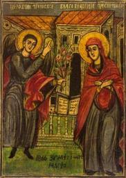 | Keywords: Blagoveštenie od Sv. Petka Vratnička.jpg  bg Благовещение цъ ква Света Петка с В атница 1866 година Авто Йосиф Радев  ажовски от Лаза ополе Разме и 37 5 Х 27 Х 2 5 cm mk Благовештение ц ква Света Петка с В атница 1866 година Авто Јосиф Радев  ажовски од Лаза ополе Дим 37 5 Х 27 Х 2 5 см http //www kalamus com mk/pdf_spisanija/patrimonium_5/021 20 20027_4 20Patrimonium 202012 20 20M 20M 20Masnic pdf THE ICON GALLERY IN THE CHURCH OF STS CYRIL AND METHODIUS IN TETOVO Josif Mažovski 1866 PD-Macedonia Ss Cyril and Methodius icon gallery Tetovo Icons of Annunciation St Petka Church Vratnica 1866 paintings Yosif Mazhovski |