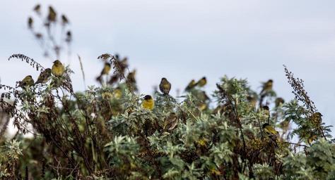 Keywords: Massor av fåglar i buskage natur et fåglar djur oromia etiopien balebergen platserspecifika
