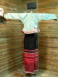 | Keywords: Blang woman brocade dress - Yunnan Nationalities Museum - DSC04300.JPG Blang woman brocade dress Clothing exhibited in the Yunnan Nationalities Museum Kunming Yunnan China I took this photograph 2011-08-13 02 25 56 Daderot Public domain Clothing in the Yunnan Nationalities Museum Blang clothing |