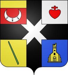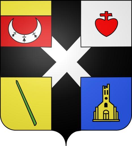| Keywords: Blason chauvé44.svg blazon of en Chauvé city Loire-Atlantique Chauvé Loire-Atlantique fr Écartelé au 1 de gueules au croissant d'argent à trois mouchetures d'hermine de sable et au chef d'or au 2 au cœur croiseté de gueules au 3 de sinople à une perche de sinople posée en bande au 4 d'azur à l'église au clocher brisé d'or ; sur le tout une croix de sable chargée en abîme d'un sautoir d'argent Koostia Projet Blasons Own Koostia v -Blasons other versions Quarterly shields Crosses sable Gules a chief Or 1 crescent in heraldry 3 ermine spots in heraldry Hearts in heraldry Churches in heraldry Saltires argent Chauvé Coats of arms of cities in Loire-Atlantique SVG coats of arms of France DEFAULTSORT Chauve |
