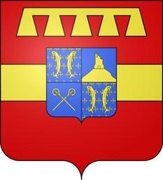 | Keywords: Blason de la ville de Belrain (Meuse).svg blazon of en city of Belrain Belrain Meuse Belrain fr De gueules à la fasce d'or accompagnée en chef d'un lambel à cinq pendants du même Chargé en cœur d'un écu écartelé aux 1- 4 d'azur semé de croix recroisetées au pied fiché d'or à deux bars adossés du même ; au 2 d'azur à une tour ruinée d'or posée sur une terrasse du même et au 3 d'azur à deux crosses d'or en sautoir spax89 Projet Blasons Own spax89 v -Blasons other versions Belrain Semy of Crosses Barbels in heraldry Ruined towers in heraldry Coats of arms of cities in Meuse SVG coats of arms of France DEFAULTSORT Belrain |