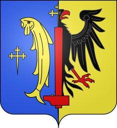 | Keywords: Blason de la ville de Audun-le-Tiche (Moselle).svg blazon of en city of Audun-le-Tiche Audun-le-Tiche Moselle Audun-le-Tiche fr Mi-parti d'azur à deux bars adossés d'or cantonnés de quatre croisettes recroisetées au pied fiché du même et mi-parti d'or à l'aigle contournée de sable becquée et membrée de gueules ; un marteau renversé de gueules brochant sur le tout spax89 Projet Blasons Own spax89 v -Blasons other versions Audun-le-Tiche Barbels in heraldry Coats of arms of cities in Moselle SVG coats of arms of France Coat of arms of the County of Bar DEFAULTSORT Audun-le-Tiche |