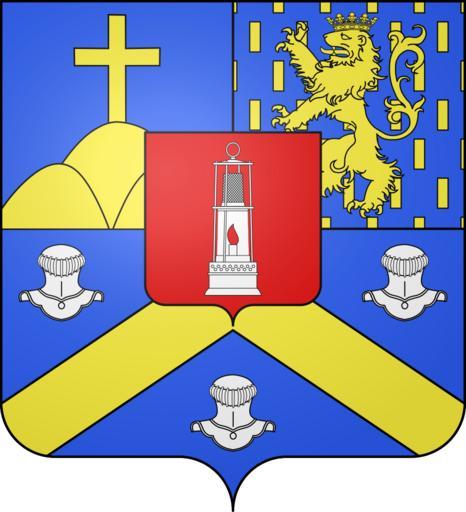 | Keywords: Blason de la ville de Creutzwald (Moselle).svg blazon of en city of Creutzwald Creutzwald Moselle Creutzwald fr Coupé au 1 parti d'azur au mont de trois coupeaux d'or sommé d'une croix du même et d'azur semé de billettes d'or au lion couronné du même; au 2 d'azur au chevron d'or accompagné de trois casques d'argent tarés de face sur le tout de gueules à la lampe de mineur d'argent allumée de gueules spax89 Projet Blasons Own spax89 v -Blasons other versions Creutzwald Per fess the chief per pale Triple mountains Or Crosses in heraldry Azure billeté Or a lion of the same Azure a chevron Or Helmets in heraldry Lamps in heraldry Coats of arms of cities in Moselle SVG coats of arms of France DEFAULTSORT Creutzwald |