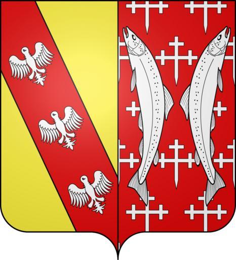 | Keywords: Blason de la ville de Delme (Moselle).svg blazon of en city of Delme Delme Moselle Delme fr Parti d 'or à la bande de gueules chargée de trois alérions d'argent et de gueules semé de croix recroisetées au pied fiché d'argent à deux saumons adossés de même spax89 Projet Blasons Own spax89 v -Blasons other versions Delme Moselle Semy of Crosses Salmons in heraldry Alerions in heraldry Coats of arms of cities in Moselle SVG coats of arms of France Derivatives of the Coat of arms of Lorraine DEFAULTSORT Delme |
