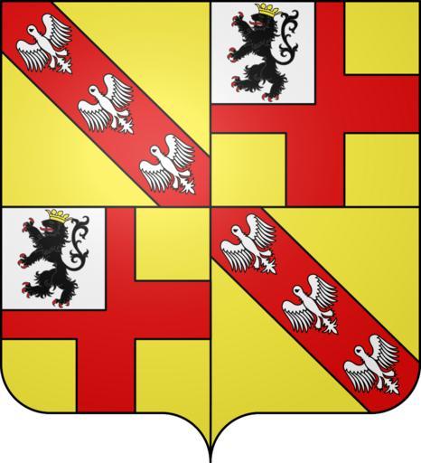 | Keywords: Blason de la ville de Faulquemont (Moselle).svg blazon of en city of Faulquemont Faulquemont Moselle Faulquemont fr Écartelé au premier et au quatrième d'or à la bande de gueules chargée de trois alérions d'argent au deuxième et au troisième d'or à la croix de gueules et au franc-quartier d'argent chargé d'un lion de sable armé et lampassé de gueules couronné d'or spax89 Projet Blasons Own spax89 v -Blasons other versions Faulquemont Alerions in heraldry Coats of arms of cities in Moselle SVG coats of arms of France Derivatives of the Coat of arms of Lorraine DEFAULTSORT Faulquemont |
