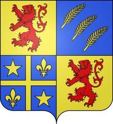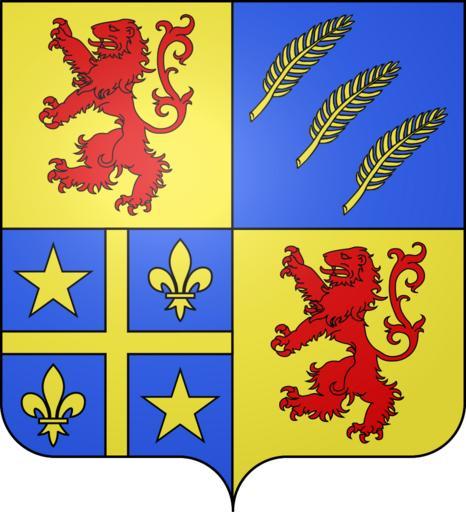 | Keywords: Blason de la ville de Leuglay (21).svg blazon of en city of Leuglay Leuglay Côte-d'Or Leuglay Côte-d'Or fr Ecartelé au premier et au quatrième d'or au lion de gueules au deuxième d'azur à trois palmes aussi d'or en barre rangées en bande au troisième aussi d'azur aussi d'azur à la croix d'or cantonnée en I et IV d'une étoile et en II et III d'une fleur de lys le tout du même it inquartato nel 1ºe 4º d'oro al leone di rosso; nel 2º d'azzurro a tre palme pure d'oro poste in sbarra e ordinate in banda; nel 3º pure d'azzurro alla croce d'oro accantonata nel I e IV da una stella e nel II e III da un giglio il tutto dello stesso spax89 Projet Blasons Own spax89 v -Blasons other versions Leuglay Coats of arms of cities in Côte-d'Or SVG coats of arms of France DEFAULTSORT Leuglay |