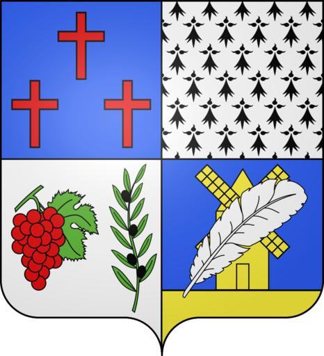 | Keywords: Blason de la ville de Bezouce (30).svg blazon of en city of Bezouce Bezouce Gard Bezouce Gard fr Ecartelé au premier d'azur aux trois croisettes latines cousues de gueules mal ordonnées au deuxième d'hermine plain au troisième d'argent à la grappe de raisin de gueules feuillée d'une pièce de sinople senestrée d'un rameau d'olivier du même fruité de sable au quatrième d'azur au moulin à vent d'or sur une terrasse du même à la plume d'oie d'argent brochant en barre sur le tout it inquartato nel 1º d'azzurro a tre crocette latine cucite di rosso male ordinate; nel 2º d'armellino pieno; nel 3º d'argento al grappolo d'uva di rosso fogliato di un pezzo di verde sinistrato da un ramo d'olivo dello stesso fruttato di nero; nel 4º d'azzurro al mulino a vento d'oro su una terrazza dello stesso alla piuma d'oca d'argento attraversante in sbarra sul tutto spax89 Projet Blasons Own spax89 v -Blasons other versions Bezouce Contravention of no colour on colour Coats of arms of cities in Gard SVG coats of arms of France DEFAULTSORT Bezouce |