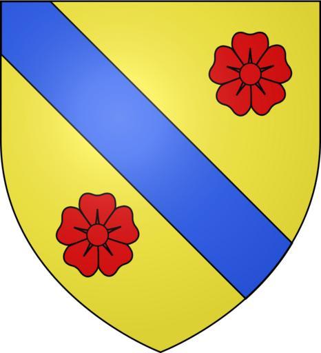 Keywords: Blason famille du Carteron.svg d or a la bande d azur accompagnée de deux roses de gueules Own Nicolas C formula 01 AUR+PO BAN AZU+2ROSA RUB Or a bend azure Azure gules Or in heraldry