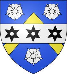 Keywords: Blason famille Tricou.svg d'azur au chevron d'or accompagné de trois roses d'argent une fasce du même brochant sur le tout chargée de trois molettes d'éperon de sable Own Maclauren 2009-09-01 SVG coats of arms of families of France