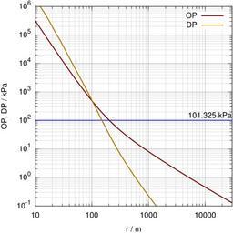| Keywords: Blast wave standard curve.svg en Standard curves for overpressure and dynamical pressure of a 1-kiloton sea-level free-air burst free-air means without shock reflection Range is in metres pressure in kilopascals The blue line indicates the standard sea-level pressure of 101 325 kilopascals Standardkurven für à berdruck und dynamischen Druck einer 1-Kilotonnen-Freiluftexplosion d h keine Reflexionen auf Meeresniveau Die blaue Linie gibt den Standarddruck von 101 325 Kilopascal an Own SiriusB 2008-11-21 Image Blast wave standard curve png The graph can be reproduced using this Gnuplot script reset set term svg enhanced size 600 600 font Helvetica 16 ;set output 'pdna svg' unset grid slw 1 2 set style line 1 lt 1 lw 2 0 slw lc rgb ' 770000' set style line 2 lt 1 lw 2 0 slw lc rgb ' aa7700' set style line 3 lt 1 lw 1 5 slw lc rgb ' 0000ff' set style line 4 lt 1 lw 0 5 slw lc rgb ' 606060' set style line 5 lt 1 lw 0 3 slw lc rgb ' a0a0a0' set tmargin 0 7 set bmargin 2 9 set lmargin 8 1 set rmargin 0 2 pdna x 3 04e11/x 3+1 13e9/x 2+7 9e6/ x sqrt log x/445 42+3 exp -sqrt x/445 42 /3 dynamic pressure from overpressure fxi x x/101325 +1 ft x 1 e-12 fxi x 6 fz x log fxi x -0 47 ft x / 100 +ft x gams x 1 402-3 4e-4 fz x 4/ 1 +2 22e-5 fz x 6 mus x gams x +1 / gams x -1 nrho x 1 +mus x fxi x / 5 975+fxi x kq x nrho x -1 /2 qdna x kq pdna x pdna x set logscale SI units set xlabel r / m ; set ylabel OP DP / kPa offset 0 0;runit 1 0000; punit 1000 Imperial units set xlabel r / ft ; set ylabel OP / psi ;runit 0 3048; punit 6894 7573 set xrange 10/runit 30000/runit set yrange 1 e2/punit 1 e9/punit set xtics 10; set mxtics 10 set ytics 10; set mytics 10 set format y 10 2T set grid xtics ytics mxtics mytics ls 4 ls 5 set arrow 1 from graph 0 first 101325 /punit to graph 1 first 101325 /punit nohead ls 3 set label 1 101 325 kPa at 5000 /runit 150000 /punit set key top right unset key plot pdna x runit /punit t 'OP' w l ls 1 \ qdna x runit /punit t 'DP' w l ls 2 reset Nuclear explosion physics SVG diagrams |