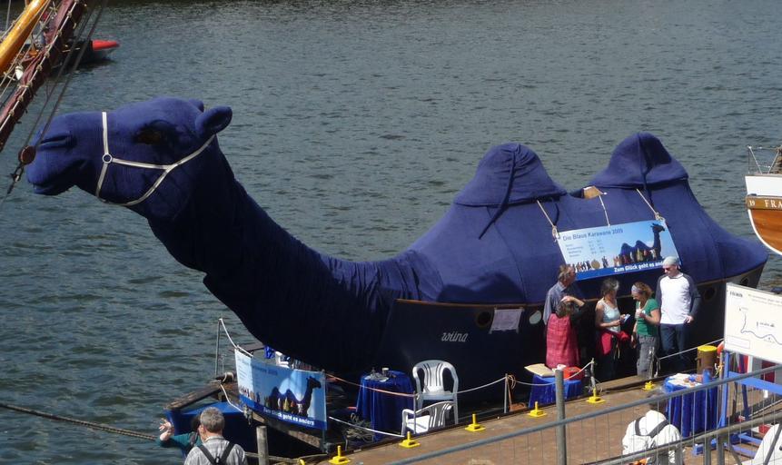 Keywords: Blaue Karawane.jpg de Die Blaue Karawane Deutscher Evangelischer Kirchentag 2009 Own Immanuel Giel 2009-05 Deutscher Evangelischer Kirchentag 2009 Blaumeier-Atelier Blue sculptures Statues of camels Blue animals in art