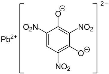 Keywords: Bleistyphnat.png Bleistyphnat das Bleisalz der Styphninsäure Own 2007-11-10 Yikrazuul Lead compounds Trinitrobenzenes Hydroquinones Aroxides Poisons