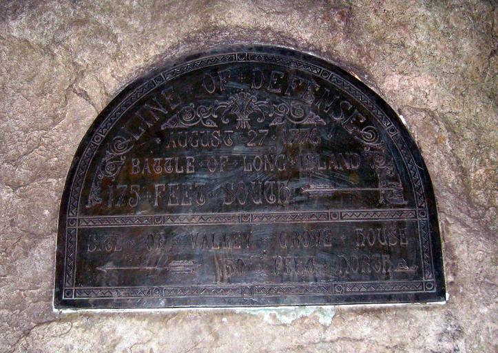 Keywords: BLI Valley Grove House jeh.JPG en Lousy flash shot of plaque for Valley Grove House almost half a mile south of en Grand Army Plaza own Jim henderson 2009-02-16 Battle of Long Island War memorials in New York Prospect Park