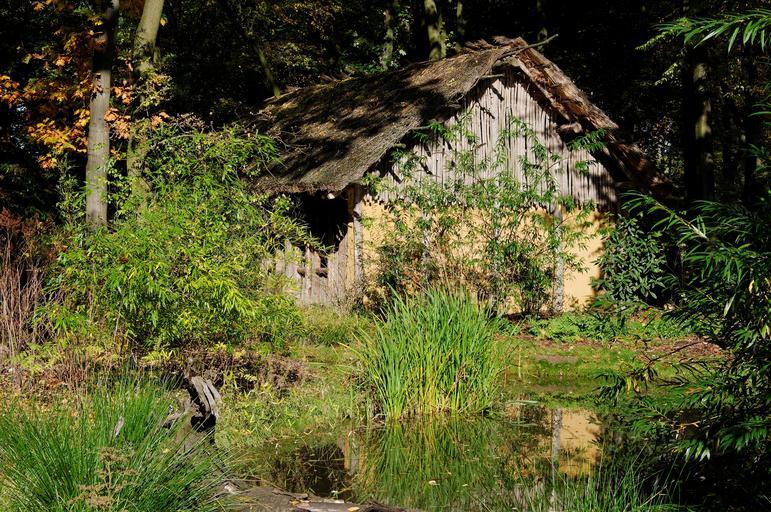 Keywords: block house wood nature forest pools reed pond sun water reflection enclosure zoom gelsenkirchen