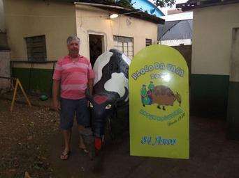 Keywords: Blocodavaca.jpg pt Foto da vaca utilizada no Bloco da vaca com um de seus organizadores Eduardo Pietrobom Duda Valéria Cristina Leme de seu arquivo pessoal Valéria Cristina Leme 25/09/2 014 Cc-zero Uncategorized 2014 September 28