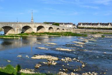 Keywords: blois bridge loire river arches arcade stone bridge stones pebbles france