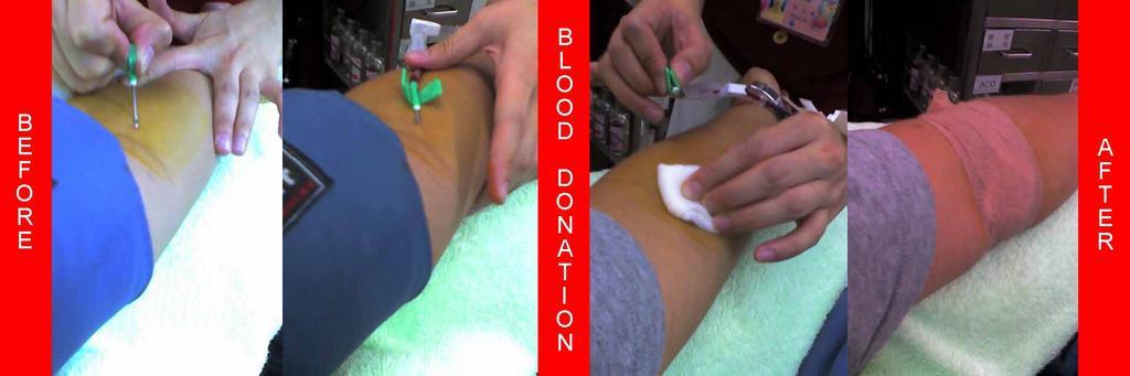 Keywords: Blood donation needle.jpg Blood donation My left arm taken by me cellphone camera The blue cuff is controlled by a platelet apheresis machine The blood bag goes to someone who needs it The pictures go to public domain Toytoy en People donating blood |