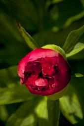 Keywords: blooming peony first stages red flower