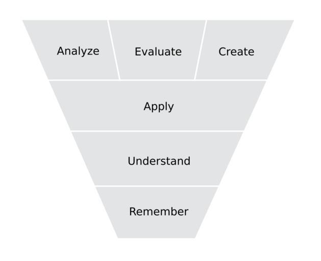 Keywords: BloomsCognitiveDomain.svg This figure illustrates the cognitive process dimension of the revised version of Bloom's taxonomy in the cognitive domain Anderson Krathwohl 2001 It depicts the belief that remembering is a prerequisite for understanding and that understanding is a prerequisite for application Anderson L W Krathwohl D R 2001 A taxonomy for learning teaching and assessing A revision of Bloom's taxonomy of educational objectives New York USA Addison-Wesley Longman Image created by me using ideas described in cited work Image BloomsCognitiveDomain PNG 2006 converted 2007 Nesbit converted by King of Hearts into SVG Nesbit BloomsCognitiveDomainFR svg Image BloomsCognitiveDomain PNG Human behavior Applied psychology Attention Bloom's taxonomy |