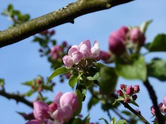 Keywords: blossom bloom apple spring apple blossom apple tree nature apple tree blossom pink leaves tree close kernobstgewaechs fruit garden bloom road