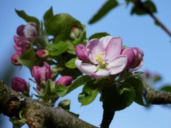 Keywords: blossom bloom apple spring apple blossom apple tree nature apple tree blossom pink leaves tree close kernobstgewaechs fruit garden bloom bud branch spring awakening beautiful herrlich apple blossom branch blue sky blossomed spring flower