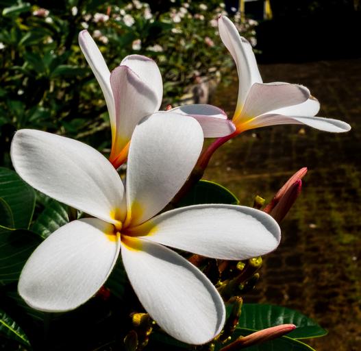 | Keywords: blossom bloom flower white yellow frangipani plumeria white yellow frangipandi flor de cebo temple tree dog gift greenhouse apocynaceae ornamental plant national flower ornamental flower west indian frangipani plumeria alba flora beautiful petals inflorescence calyx lobes exotic |