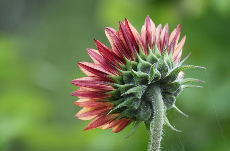 Keywords: blossom bloom garden flowers plant sun flower red sunflower sunflower bloom flower summer green flora close from the rear perspective view structures leaf structures petals flowering stems bright colorful color decorative nature