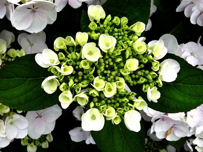 Keywords: blossom bloom hydrangea bouquet close white green plate flower beautiful nature flower plant flora garden petals colorful structure grain leaves