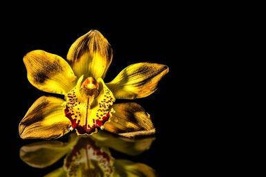 Keywords: blossom bloom orchid close mirrored reflection mirroring