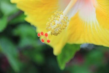 Keywords: blossom bloom pistil pollen flower hibiscus mallow close nature plant yellow public record