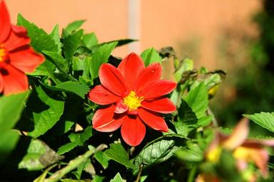 Keywords: blossom bloom red plant flower close dahlia leaves garden late summer flower garden color bloom beautiful ornamental flower garden plant colorful