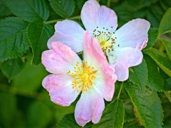 Keywords: blossom bloom wild rose pink rose family leaves petals wild rosebush plant nature rose red