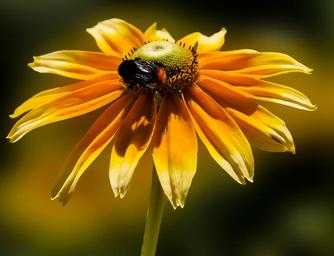 Keywords: blossom bloom zinnia hummel summer flower nectar macro yellow garden animal insect bloom
