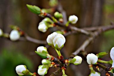 Keywords: blossoms blossom buds white blossoms flower buds spring fruit blossoms fruit tree branches garden nature green