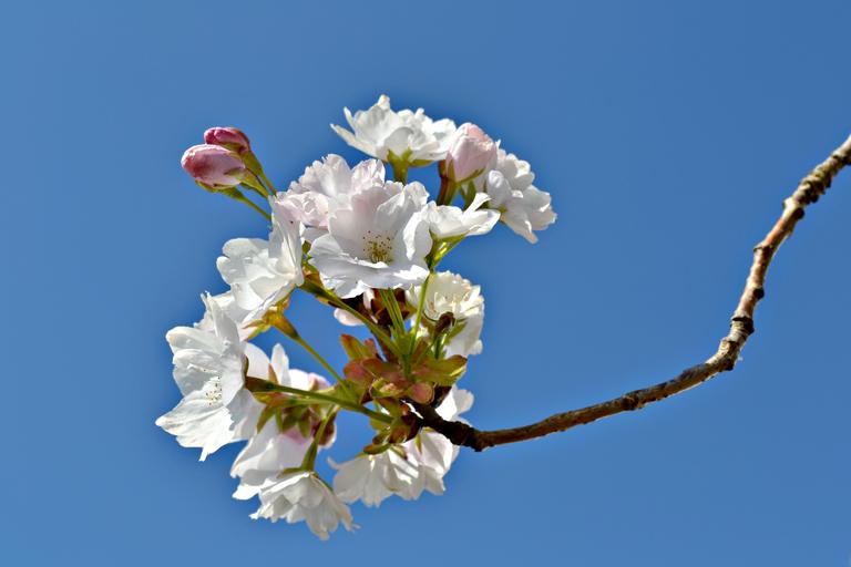 Keywords: blossoms flowers japanese cherry spring blue sky nature pink blossoms white blossoms branch bloom garden plants