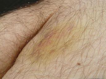 Keywords: blue blot haematoma hematoma discoloration green yellow skin leg hairy injury flushed