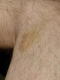 Keywords: blue blot haematoma hematoma discoloration green yellow skin leg hairy injury