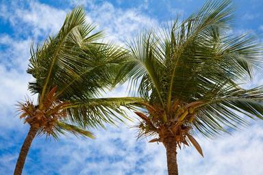 Keywords: blue cloud coconut exotic green leaf nature palm trees sky summer tree tropical