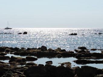 Keywords: blue costa summer sunny rocks stones boat sea