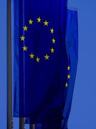 Keywords: blue emblem recognize europe europe flag flag flutter hoisted sky note national emblem mark country symbol landmark blow wind