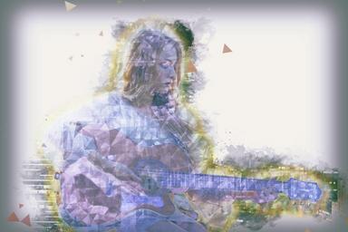 Keywords: blue energy women playing guitar polygon art wallpaper music