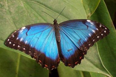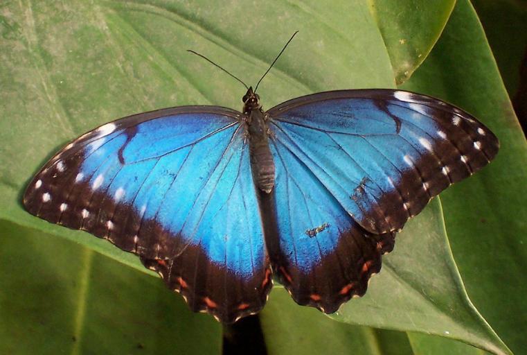 Keywords: blue morpho butterfly leaf plant insect wings macro colorful antenna blue nature